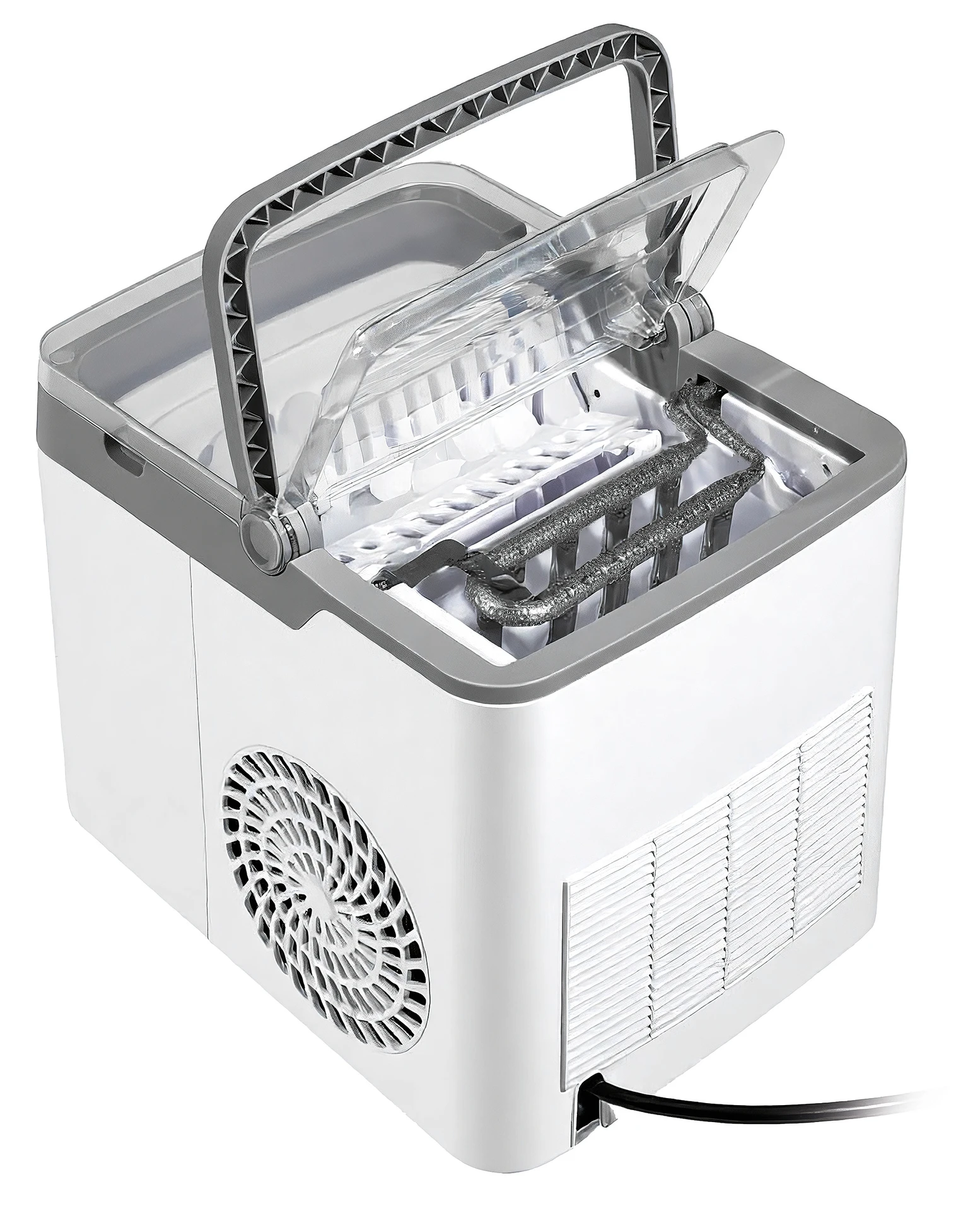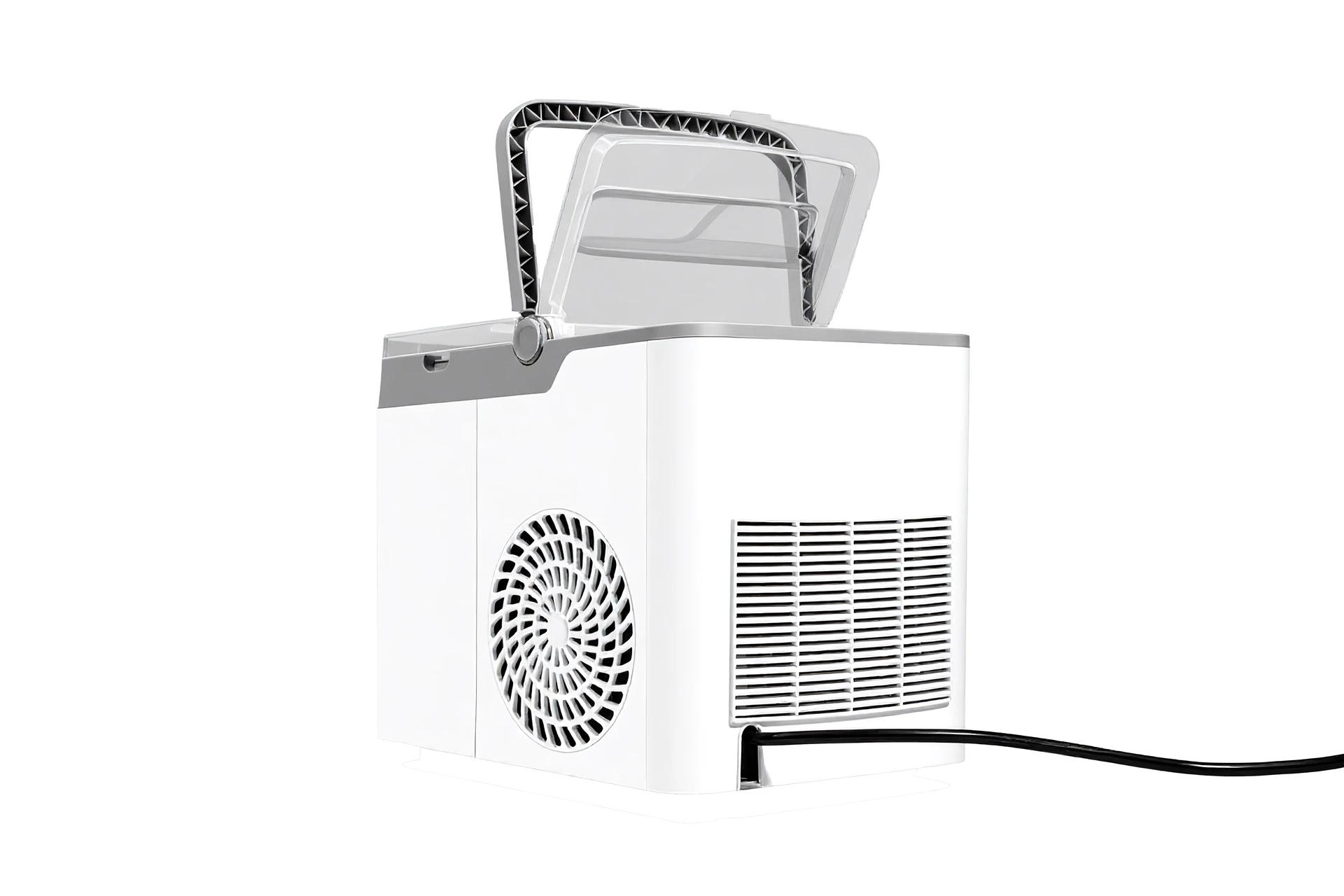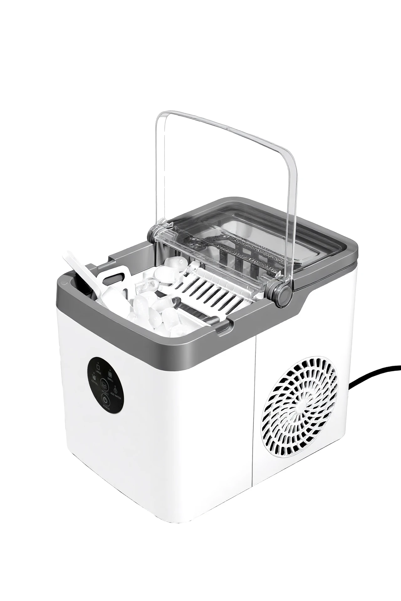 - Elegantní, moderní design s průhledným víkem pro snadnou vizuální kontrolu procesu výroby ledu